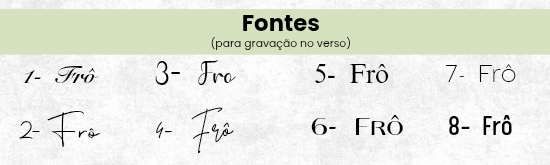 - Posso personalizar o verso também? SIM! O verso é personalizável. Mande a sua frase, data ou qualquer texto que queira colocar no botão "Personalização" (os textos aceitos devem conter, NO MÁXIMO, 30 caracteres.